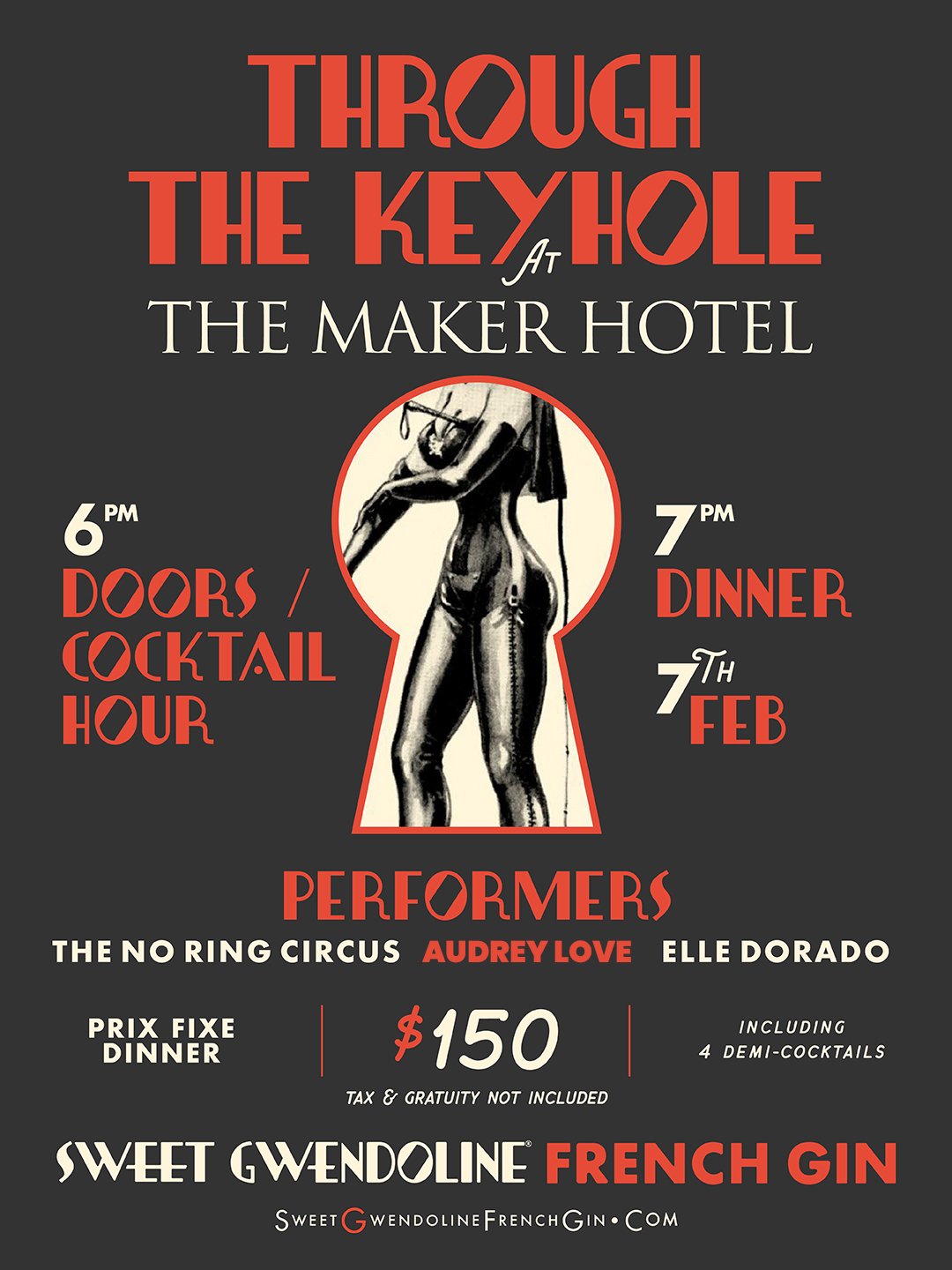 Step into an evening of indulgence and intrigue at Through the Keyhole, a one-night-only dining experience. Savor specialty Sweet Gwendoline French Gin cocktails, enjoy a four-course prix fixe menu crafted by Executive Chef Jonas Offenbach, and explore immersive gin tastings. The night comes alive with captivating performances by The No Ring Circus, Audrey Love, and Elle Dorado.
