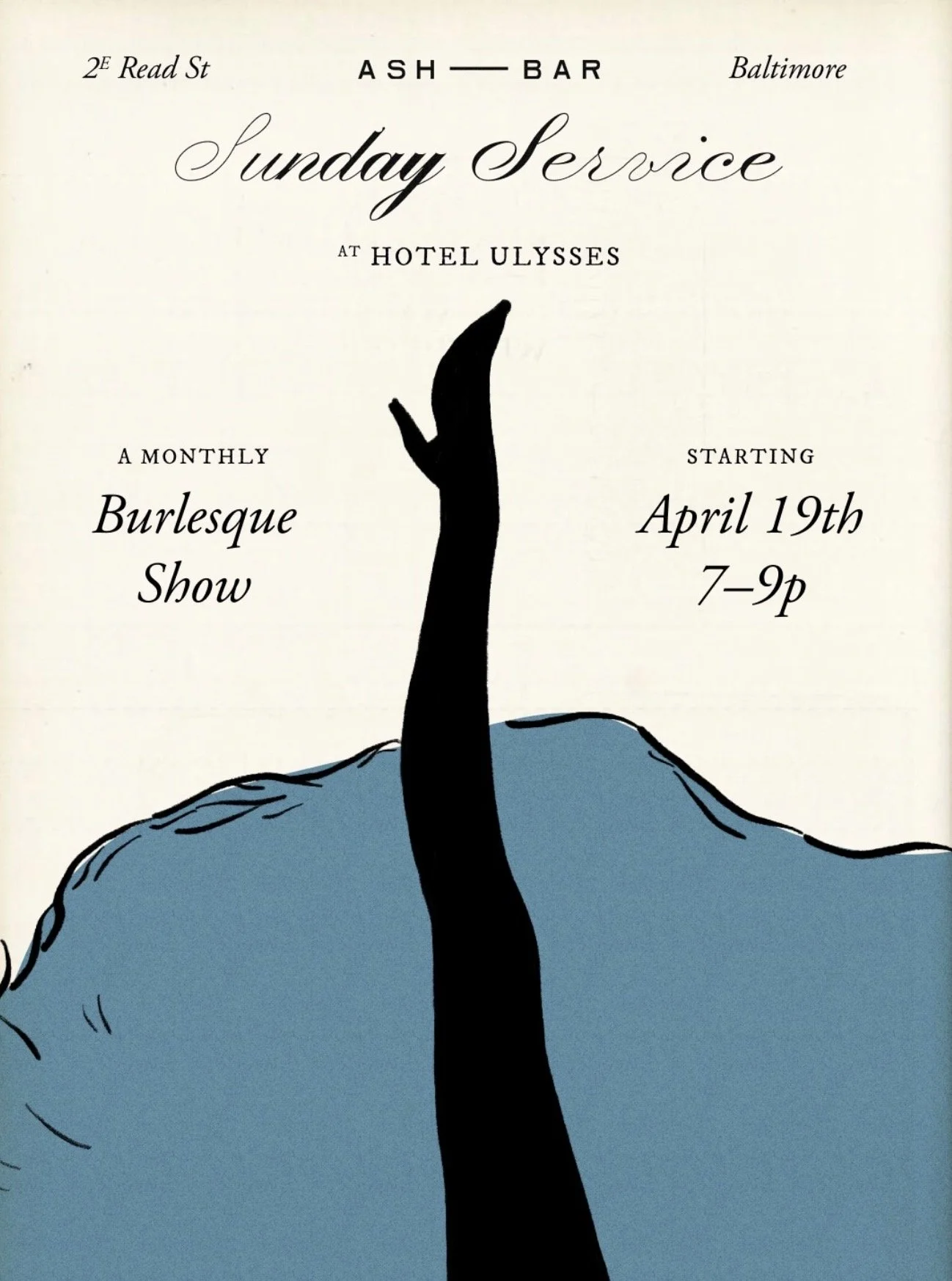 Join us for Sunday Service, a monthly burlesque show featuring Burlesque performers, specialty drinks, and à la carte bites.
